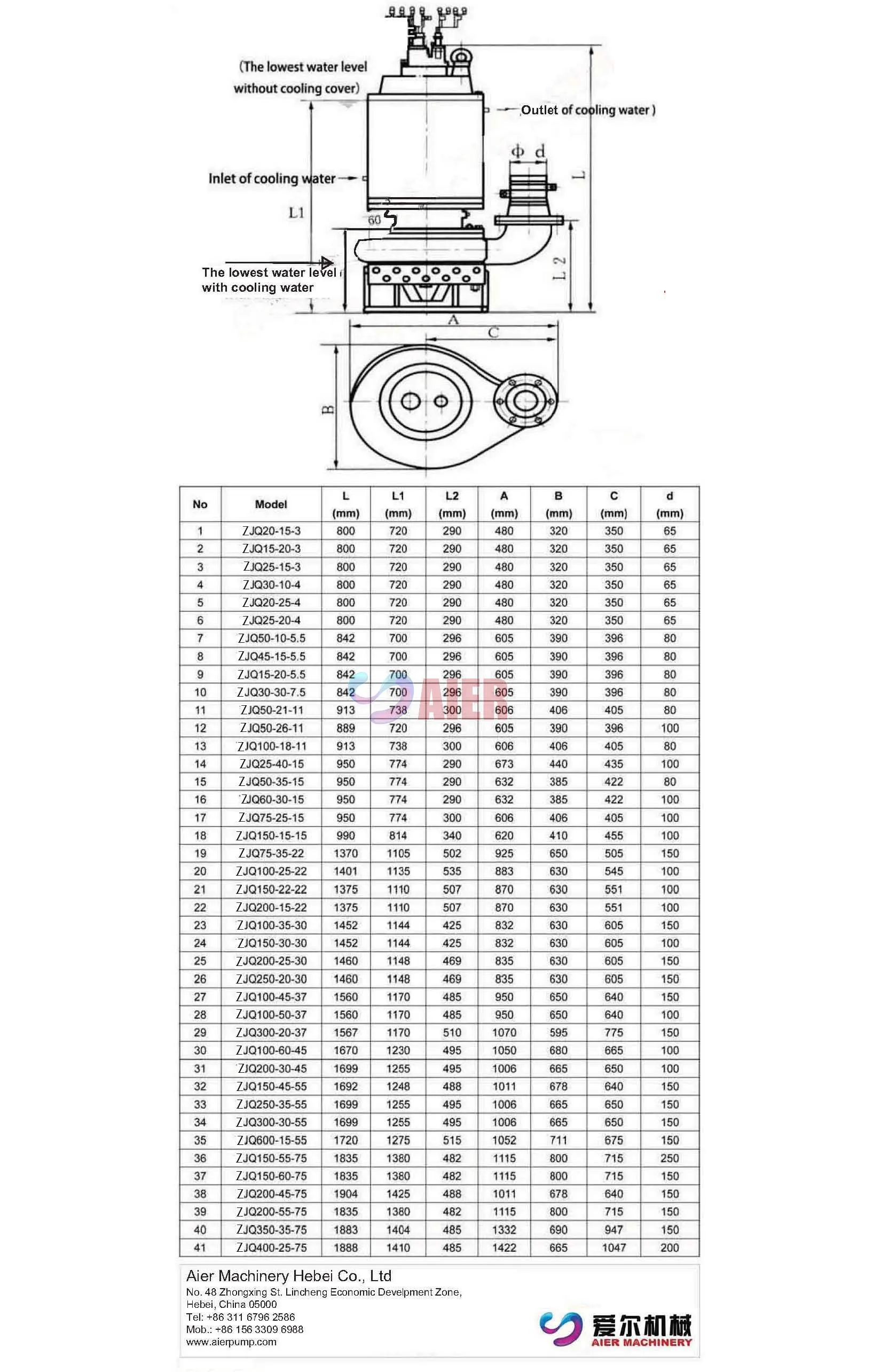 | Aier® ZJQ Submersible Slurry Pumps Performance Parameters: | |||||||||
